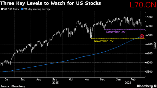 标普500指数周二一度大跌2.5%,至6710.42点,短暂跌破12月低点,最终收跌约0.9%。此次下跌还令该指数跌破100日均线,这一水平在过去一年大部分时间里都是强劲支撑。
