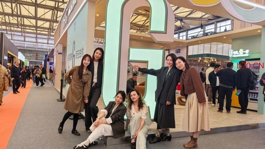上海旅游产业博览会上,参观者在佳阁品牌logo前留影。