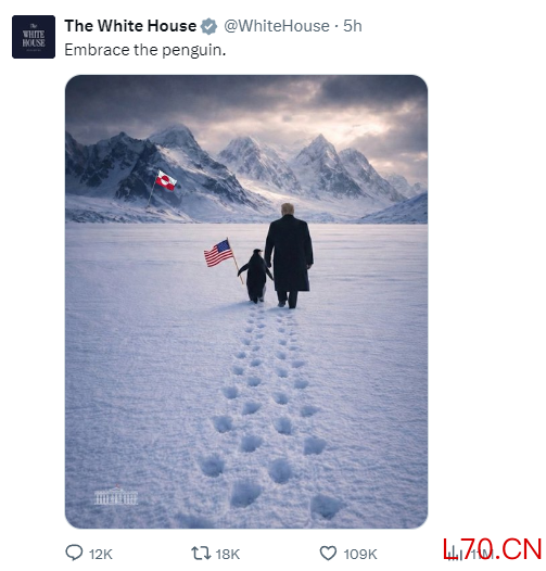 白宫发布特朗普与企鹅走向格陵兰岛AI图片白宫发布特朗普与企鹅走向格陵兰岛AI图片