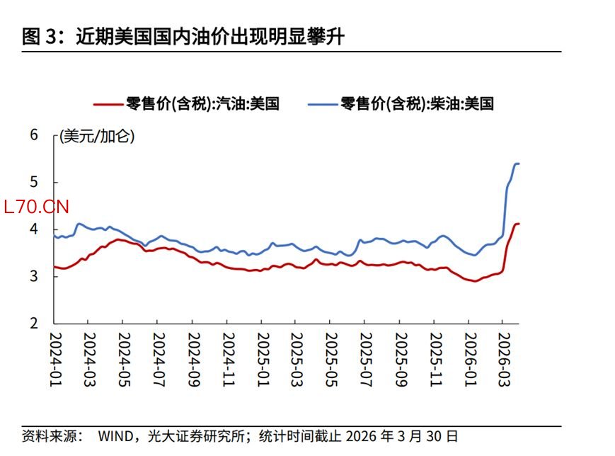 与此同时,能源冲击迅速升温,全美汽油均价升至4.02美元/加仑,部分地区突破5美元,加州更高达5.88美元。