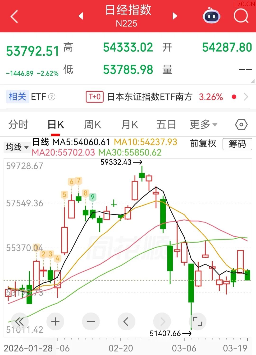 3月19日,日韩股市低开,日经225指数跌1.7%,韩国KOSPI指数跌2.8%。