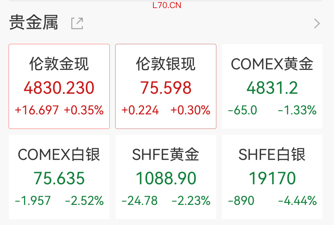 贵金属方面,黄金白银昨夜一度遭遇重挫,现货黄金创一个月新低。截至发稿,亚洲早盘现货黄金涨0.35%,现货白银涨0.3%。