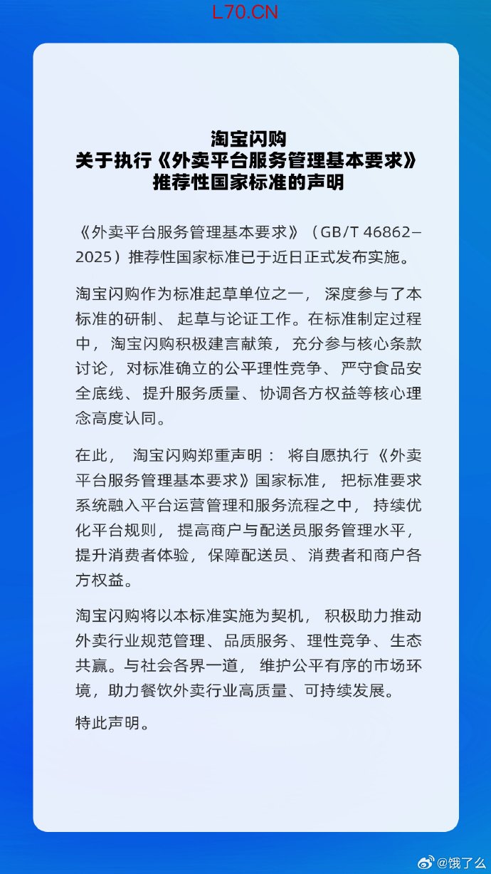 淘宝闪购回应《外卖平台服务管理基本要求》淘宝闪购回应《外卖平台服务管理基本要求》