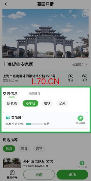 选择自驾出行的市民,最关心“怎么走”以及“车停哪”。在“祭扫通”专区找到墓园详情页,点击下方“导航”,即可直接规划驾车路线,沿途还能查看实时路况,方便避开拥堵路段。