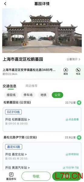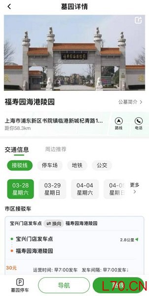 在“祭扫通”专区搜索想去的墓园,进入详情页后点击“交通信息”,就能查到所有接驳线路的信息:上车点在哪里、发车时间怎么安排、票价是多少,一目了然。